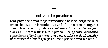 Real, long lived, electronically neutral reagent chemical. Gram formula weight (molecular mass) = 1.0079 [H] is a pseudospecies is used in hydrogen reduction reactions where the equation is not fully balanced. |
