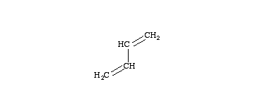 Real, long lived, electronically neutral reagent chemical. Gram formula weight (molecular mass) = 54.090 Melting point = -109 °C Boiling point = -4.5 °C Solubility in organics = very soluble Molar absorbtivity = 20900 at 217 nm !! Possible carcinogen !! Prepared by thermally cracking cyclohexene. Mixture of s-cis and s-trans conformers, the transoid form is the thermodynamically preferred conformer.