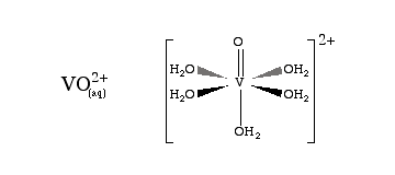 Real ion. Gram formula weight (molecular mass) = 157.01 The pentaaquaoxovanadium(IV) ion is blue. |